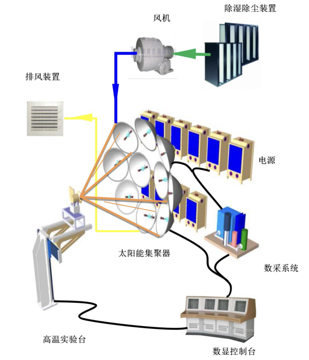 太陽模擬器是在室內環境中,在不同大氣質量條件下,模擬太陽能輻射特性的試驗臺或定標設備。 一般來說,太陽模擬器可以分為兩類。 一類是穩態模擬器,主要由光源、冷卻系統、數據采集與控制系統、濾光器等組成,多用于單體太陽能電池板和小型設備的測試。 另一個是脈沖模擬器,由一個或多個長弧脈沖氙氣燈組成。 該模擬器輻照度在一定范圍內的均勻性非常好,常用于大型設備的測試。